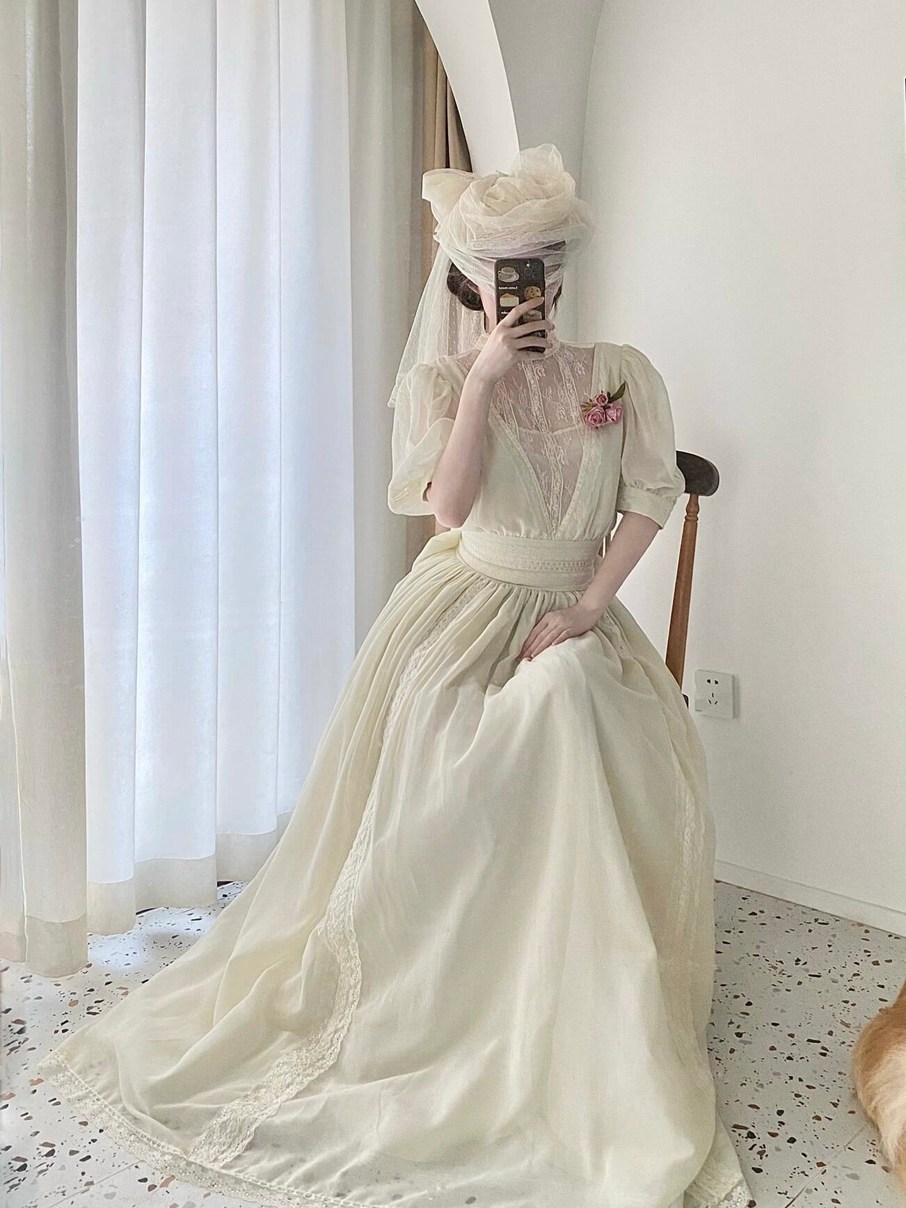 The built-in tulle gives it such a graceful look the moment you put it on. The color is soft and gentle, really pretty in person.