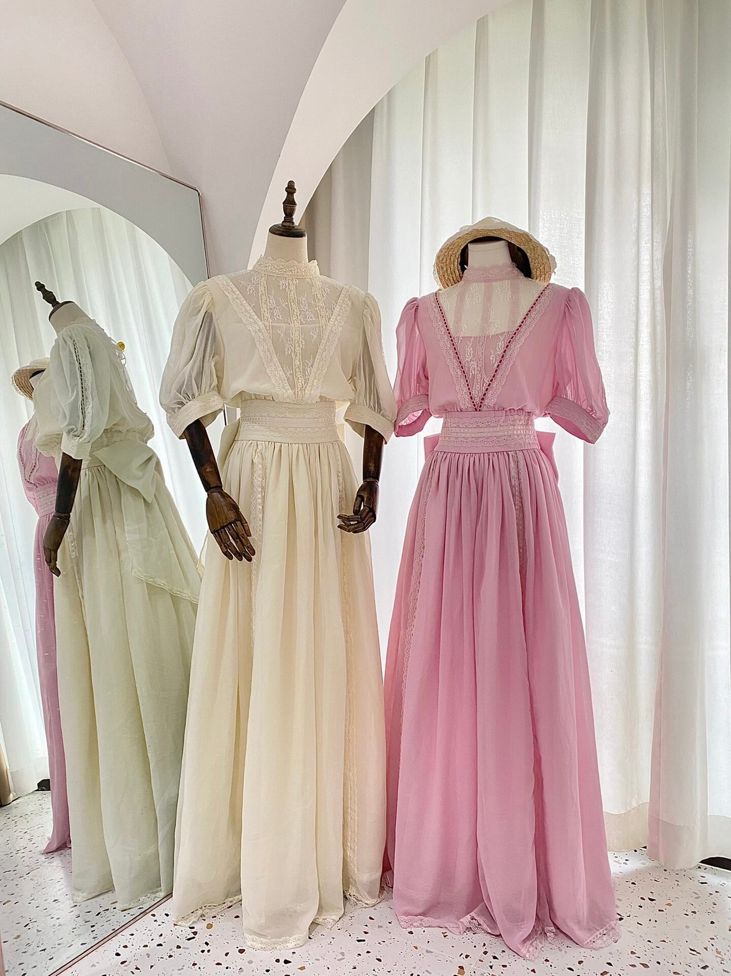 Looks great and makes my waist look slim! The off-white is super easy to style. The skirt has three layers and comes with built-in tulle, so no need for an extra petticoat. Very convenient. Kinda wish I got it in more colors.