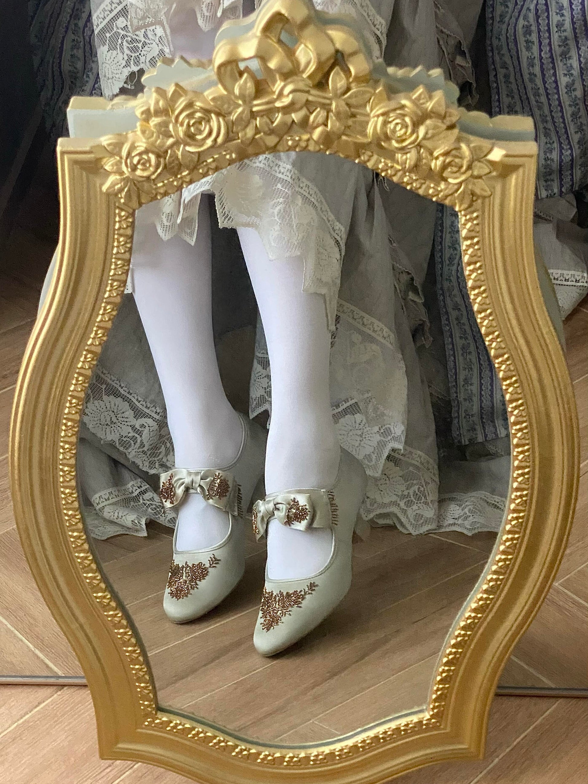 The bow and the upper are beaded purely by hand. Handmade products cannot be guaranteed to be perfect. Please take this into consideration if you mind.