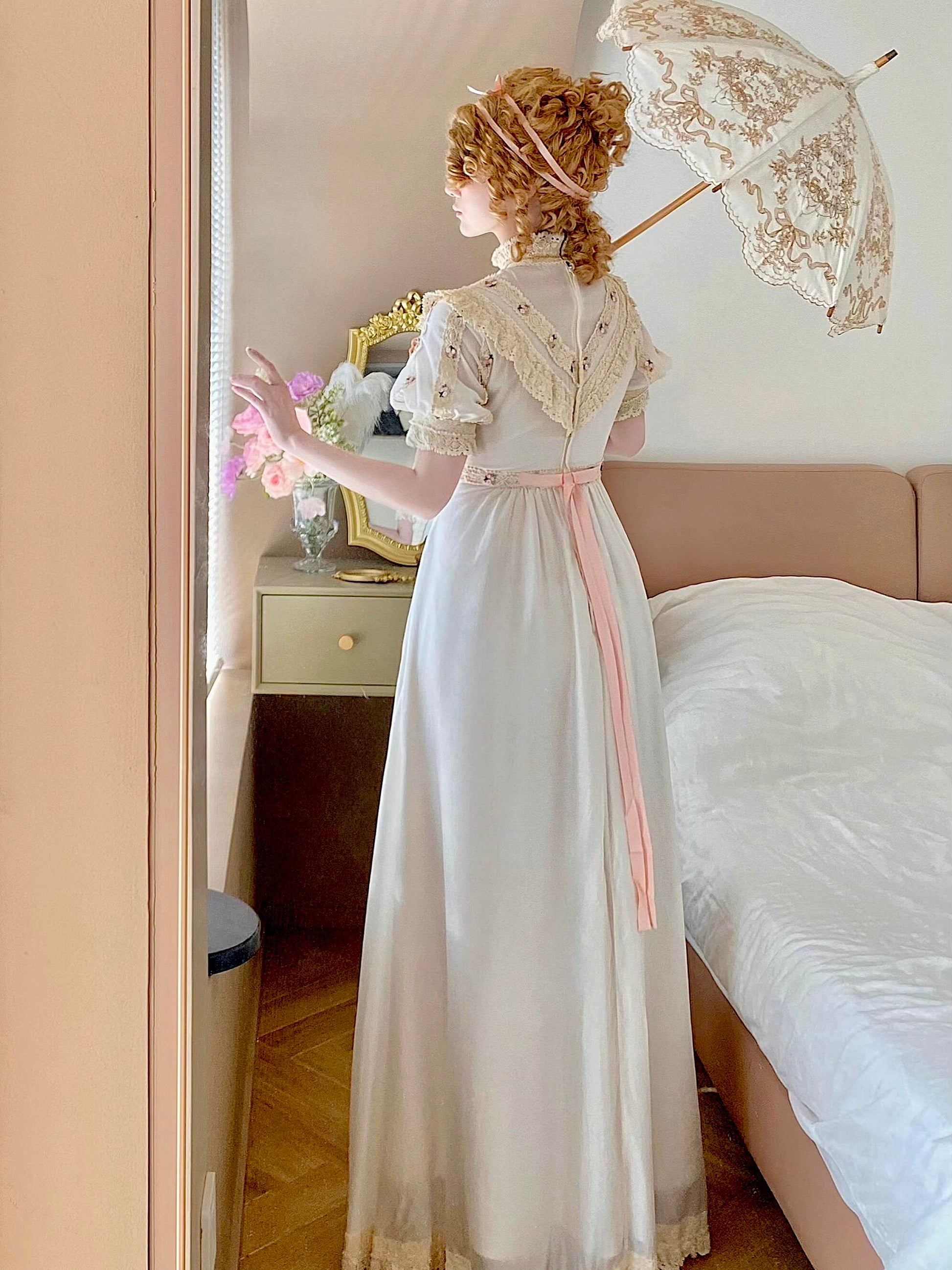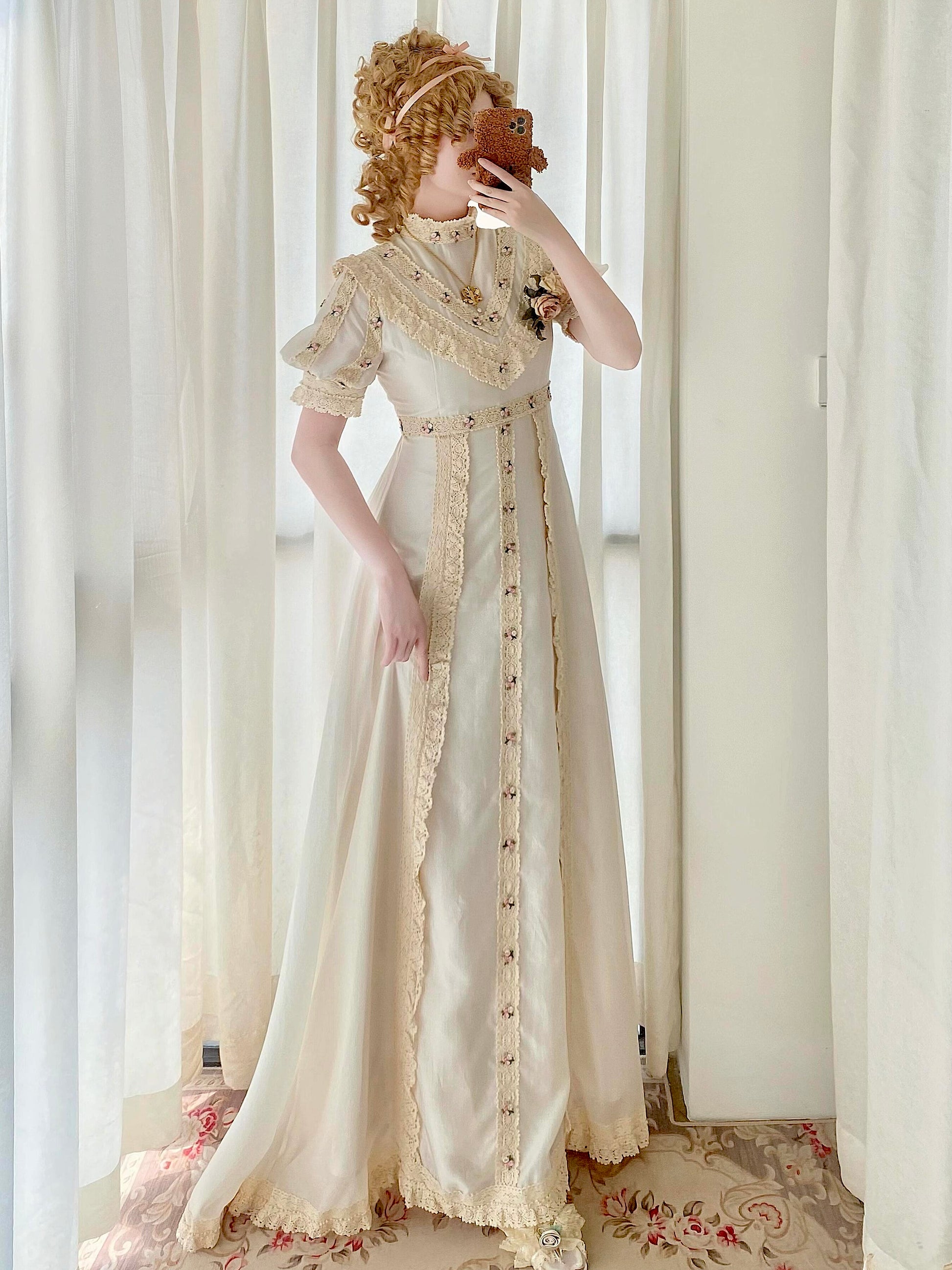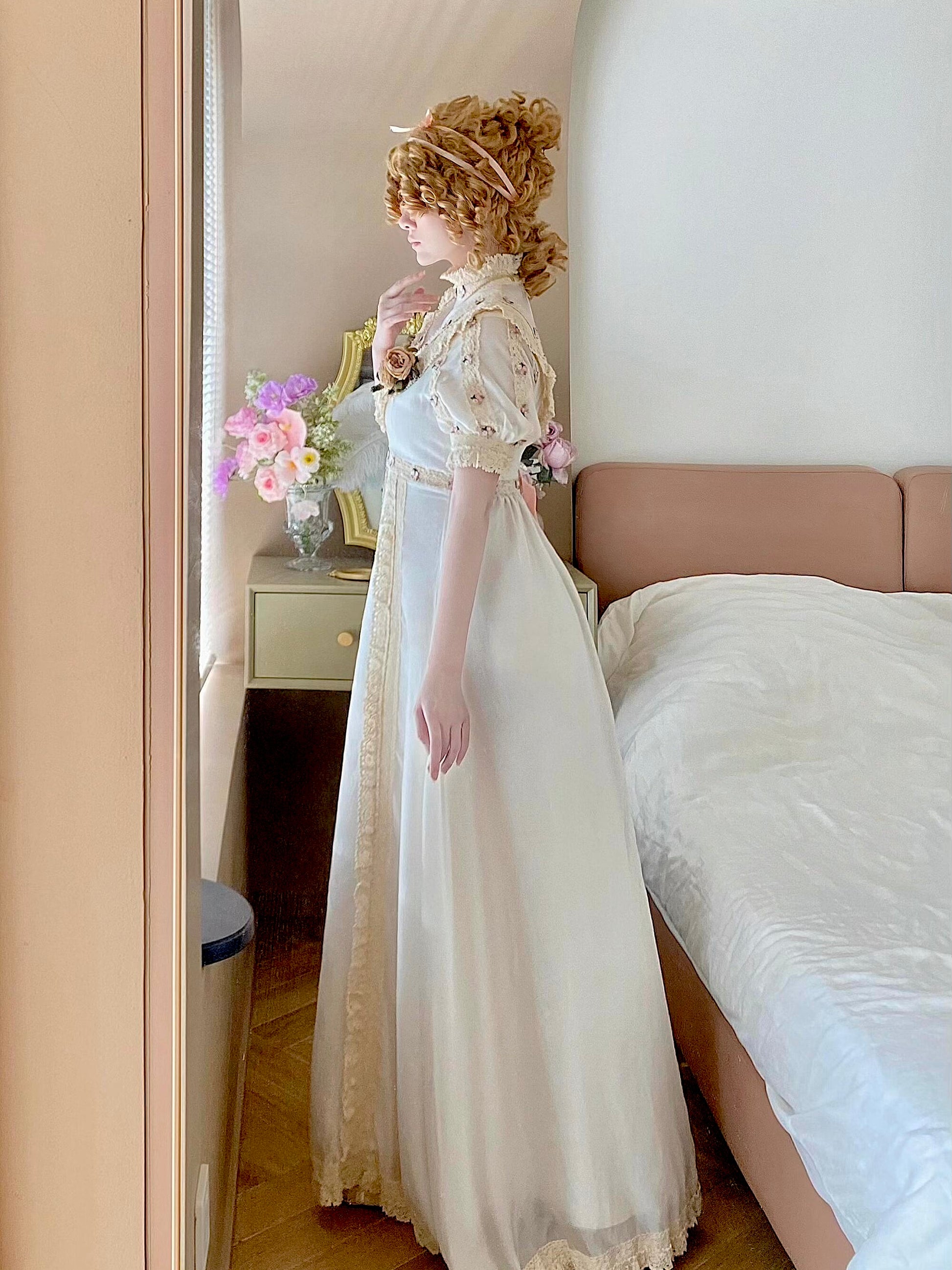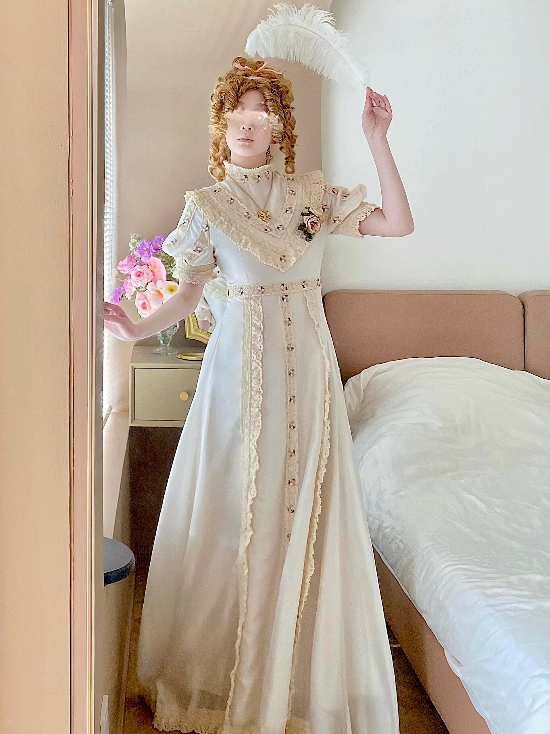 I've never seen a Regency dress with such a generous flare before >w< The train is over two meters long, much longer than what was listed in the description! It's incredibly delicate and absolutely stunning. The only downside is that the bow on the back could be more refined.
