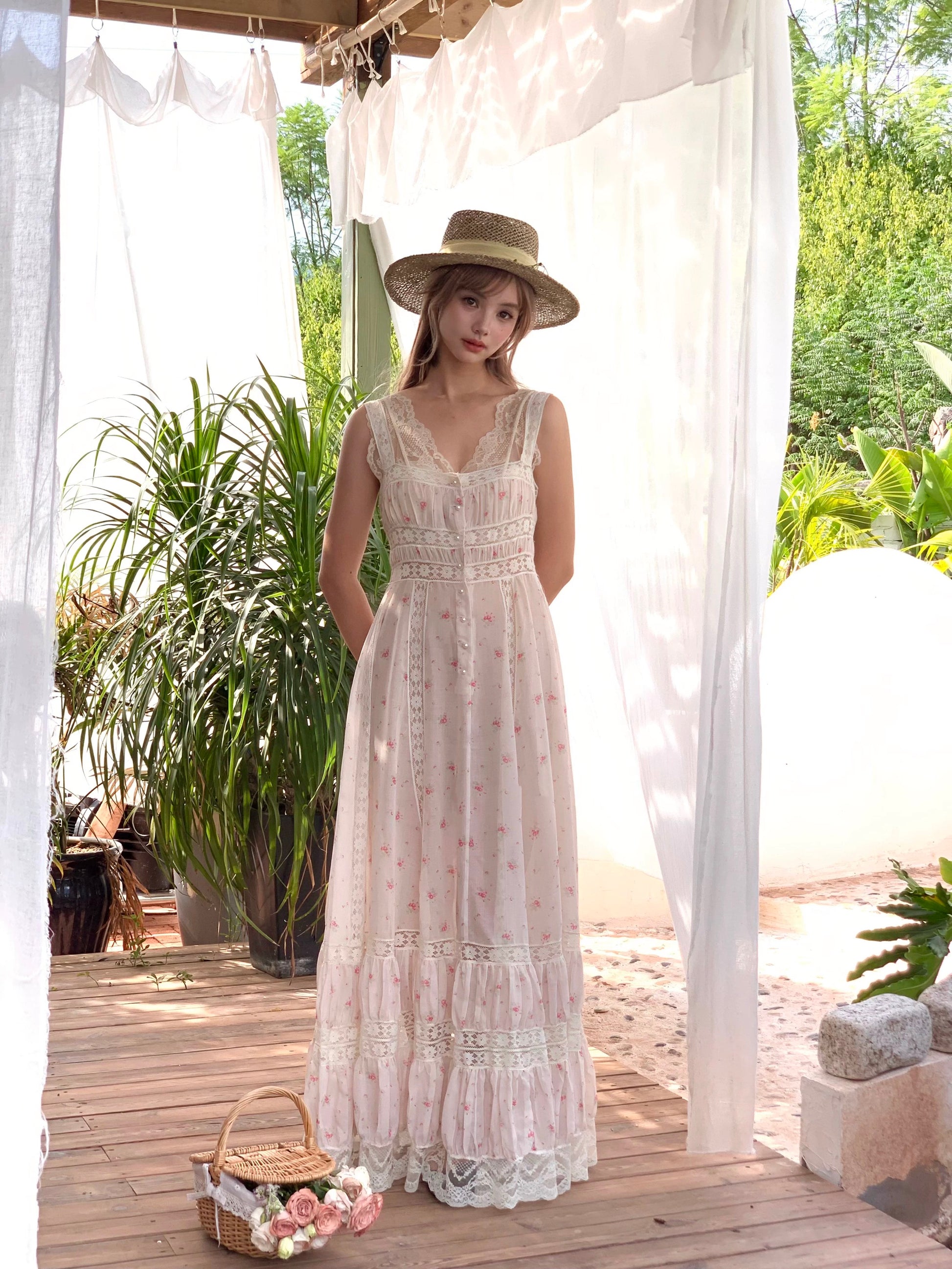 🌸 Made with 100s cotton print and lace details. The fabric is lightweight and slightly sheer, and it gets softer with every wash.